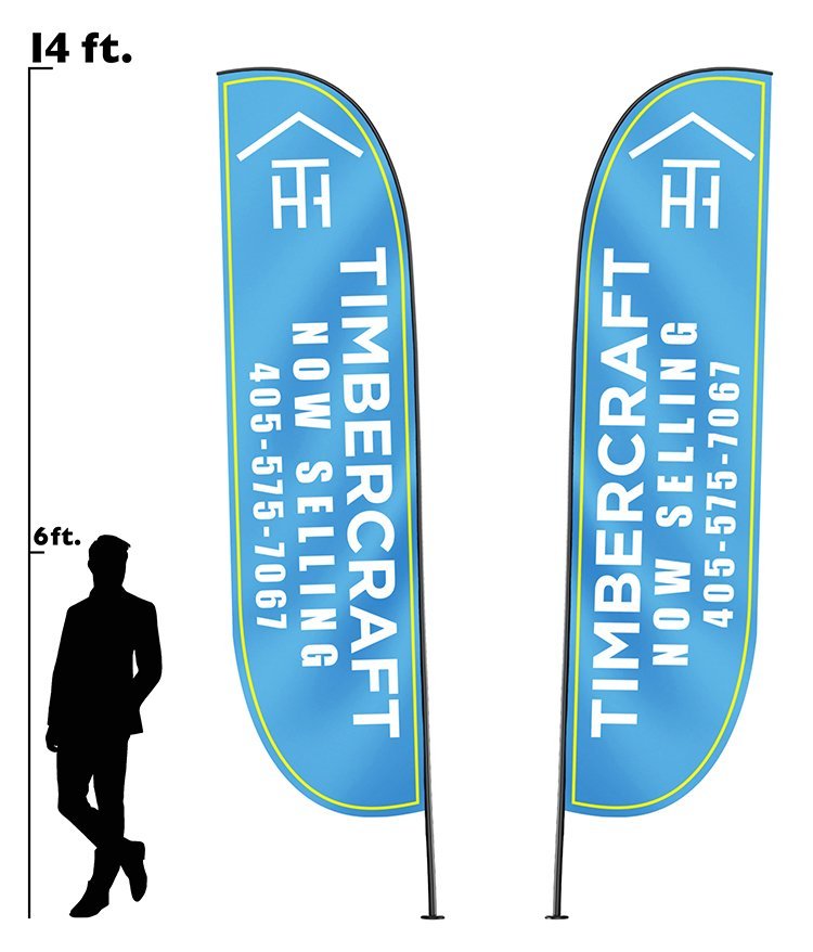 Brand: Timbercraft Homes Product: Feather flags for the promotion of model homes