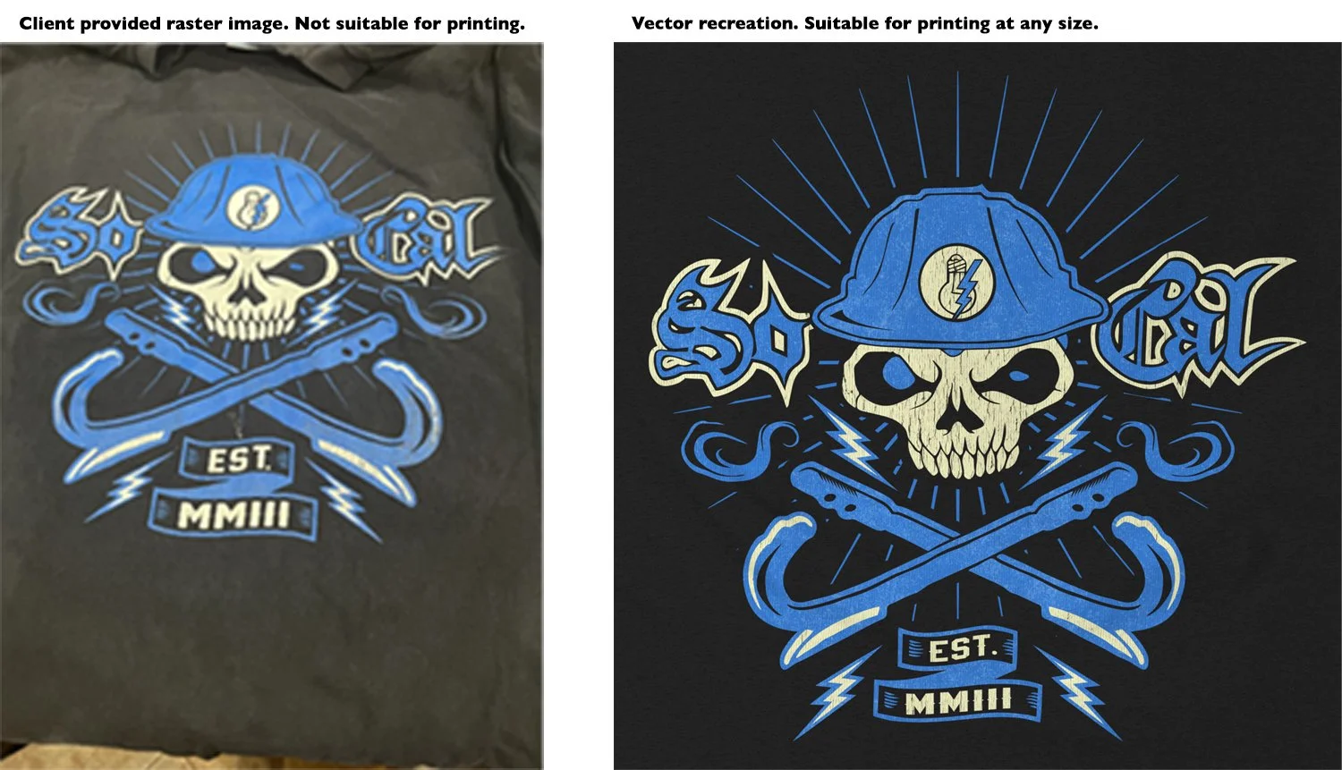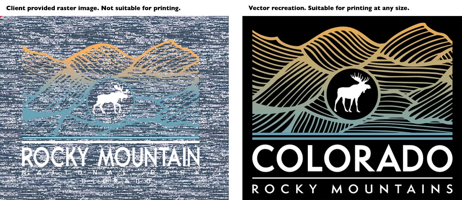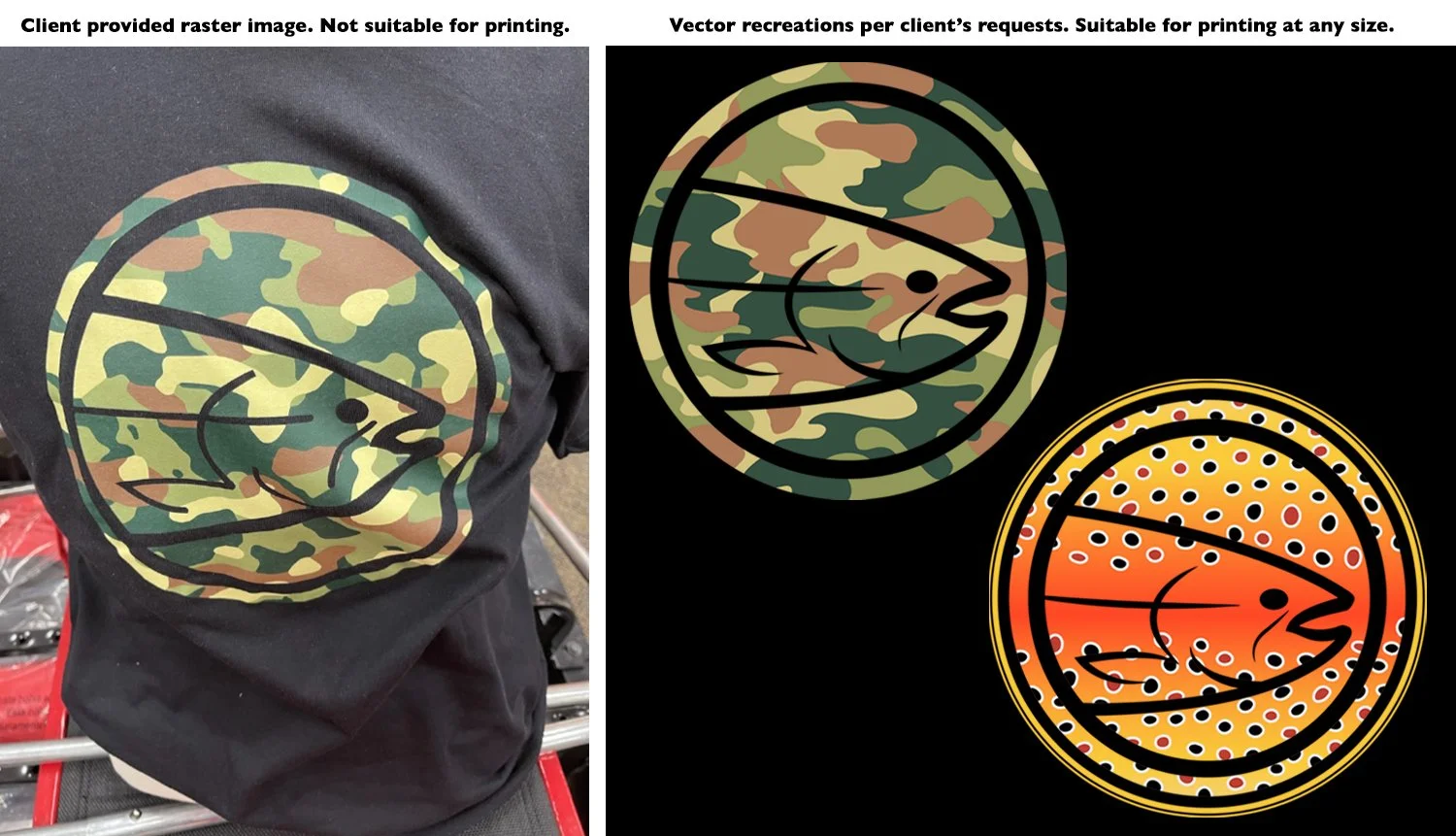 Clients will sometimes ask for designs to be printed based on existing items they already have, but do not have printable art files for. In these cases, I will recreate the requested design based off of a provided picture.